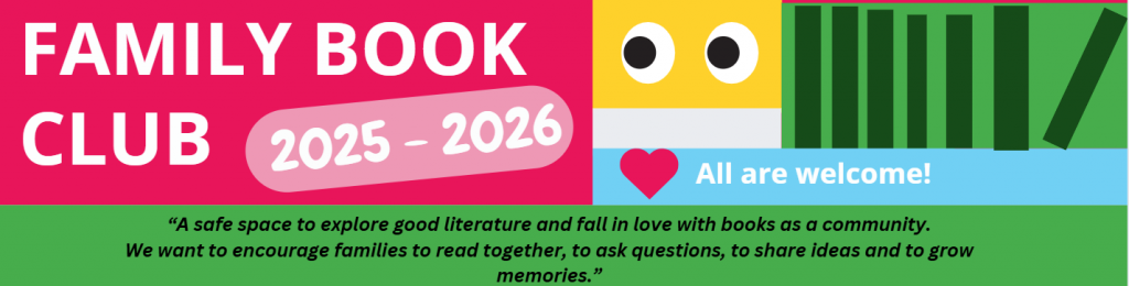 Families can read the book in whatever way best suits their family, and then show up ready to discuss and share- or just to listen in on the discussion. All families are welcome, even if you haven’t finished the book before the meeting. Younger or older siblings are welcome too.